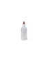 - Clear plastic bottle with fold-back suspension loop on bottom
