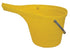The spout slides through the rails or gate and sits on the back of the feeder so you are not taking the full weight of the milk on your elbows and back.